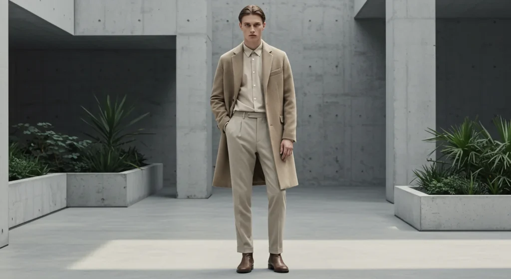 Como Apostar no Monocromático: Escolha uma cor que te favoreça e explore suas nuances. Um look todo em tons de bege (nude, caramelo, areia) é elegante e atemporal. Combine diferentes texturas para adicionar interesse visual: um tricô macio, uma calça de alfaiataria fluida e acessórios em tons de dourado.