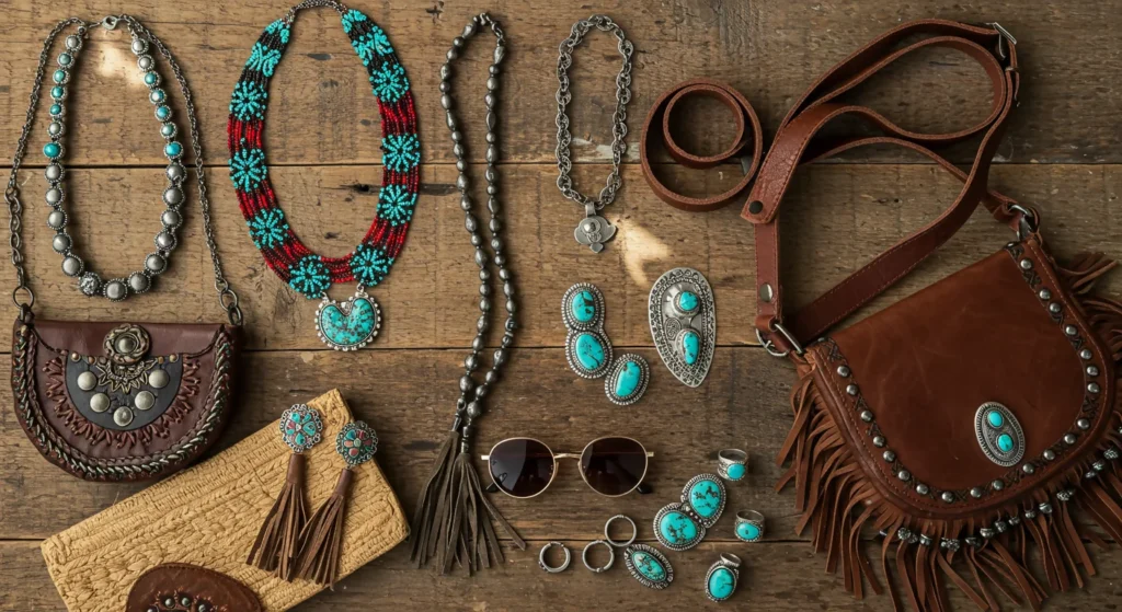 Os acessórios são a alma do estilo boho chic. Eles têm o poder de transformar um look básico em uma produção cheia de charme e personalidade. Invista em colares longos com pingentes de pedras naturais, pulseiras de miçangas, anéis de prata com design étnico e brincos de argola grandes.