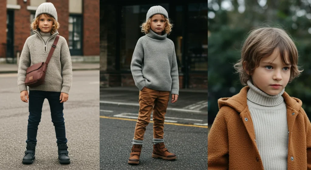 Para garantir o conforto, opte por tecidos macios e respiráveis, como algodão orgânico, linho e viscose. Evite peças com etiquetas ásperas ou costuras que possam irritar a pele sensível das crianças. Além disso, escolha modelagens amplas e confortáveis, que permitam a liberdade de movimento. Calças de moletom, leggings, camisetas oversized e jaquetas de algodão são ótimas opções para o dia a dia.