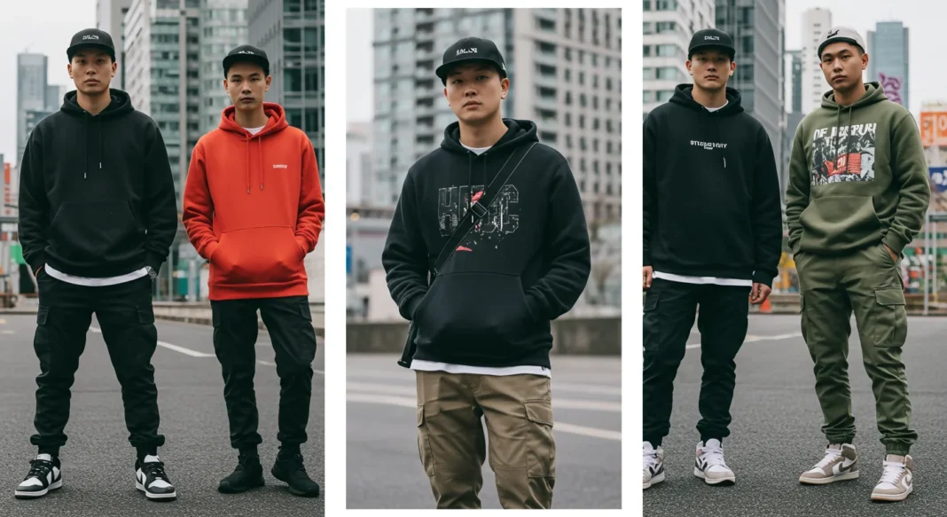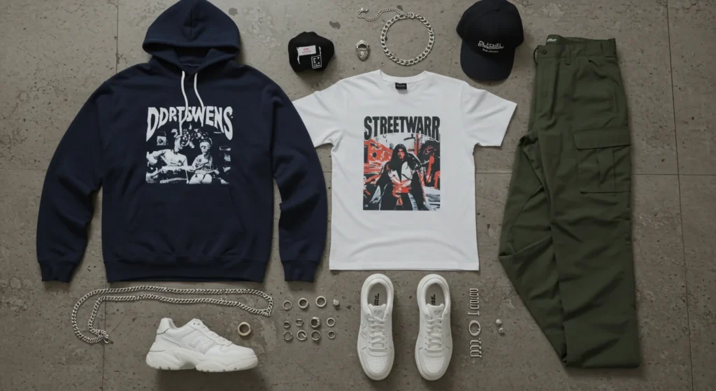 Streetwear é um estilo de moda casual e confortável que nasceu nas ruas e nos subúrbios, influenciado pela cultura do skate, hip-hop e grafite nos anos 80 e 90. Ele se caracteriza por peças oversized, tênis marcantes, camisetas estampadas, moletons, jaquetas corta-vento e acessórios como bonés e bandanas.